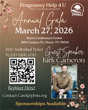 Join us for the 2026 Pregnancy Help 4 U Annual Gala, featuring special guest Kirk Cameron, and partner with us to champion life and hope in our community. We provide free pregnancy tests, ultrasounds, parenting classes, material assistance, and compassionate support.